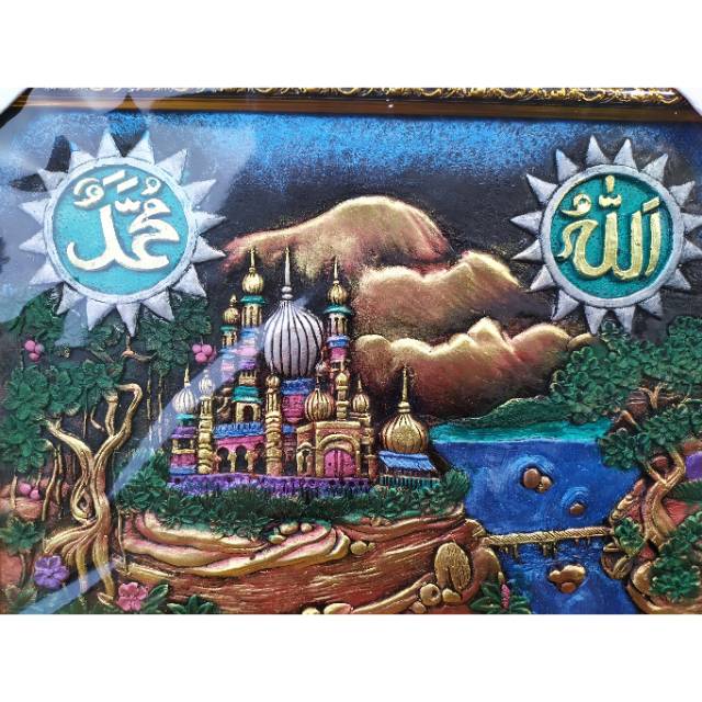 Lukisan Timbul 3d Relief Gambar Kaligrafi Allah Muhammad Background Pemandangan Alam Masjid Unik - Source