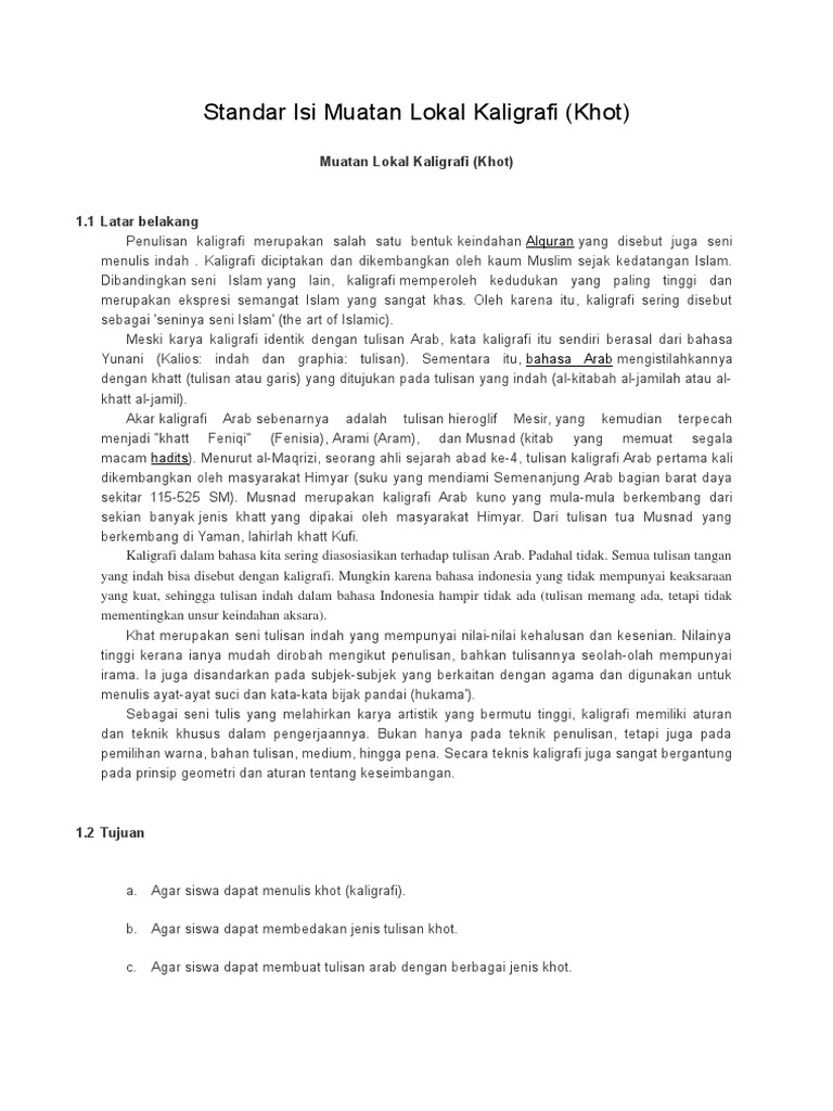 Standar Isi Muatan Lokal Kaligrafi - Source