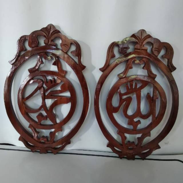 Sepasang Lukisan Kaligrafi Allah Muhammad Hiasan Ukir Bunga 32x20x2 Cm Pajangan Dekorasi Rumah Murah - Source