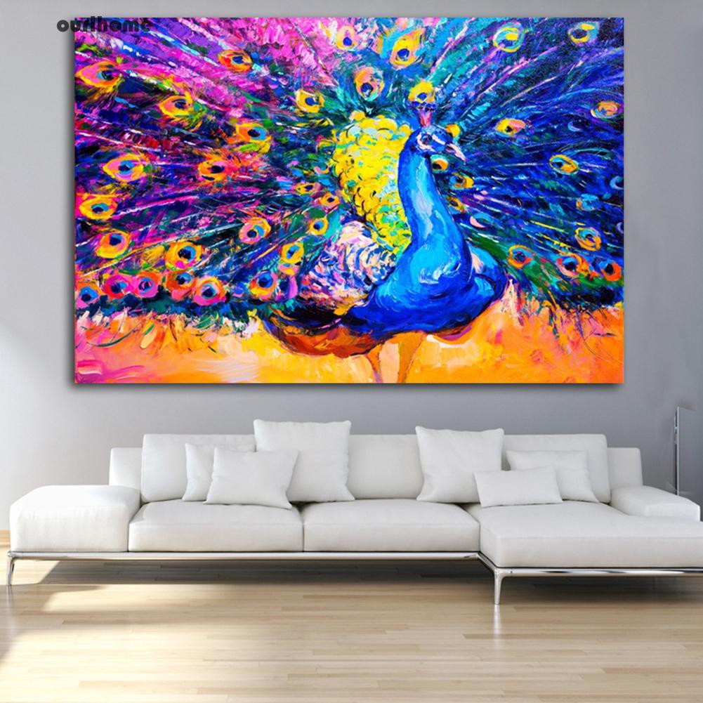 Lukisan Dengan Bahan Kanvas Tanpa Bingkai Dan Gambar Burung Merak Warna Warni Untuk Dekorasi Rumah - Source