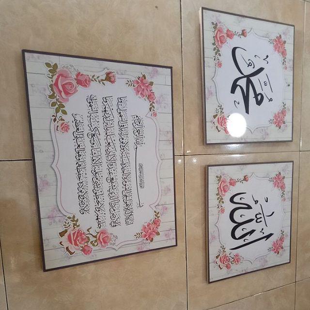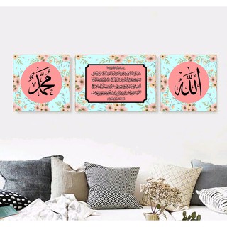 Kaligrafi Arab 3 Pcs Allah Muhammad Ayat Kursy Hiasan Dinding Shabby Bunga Chic - Source