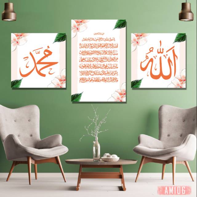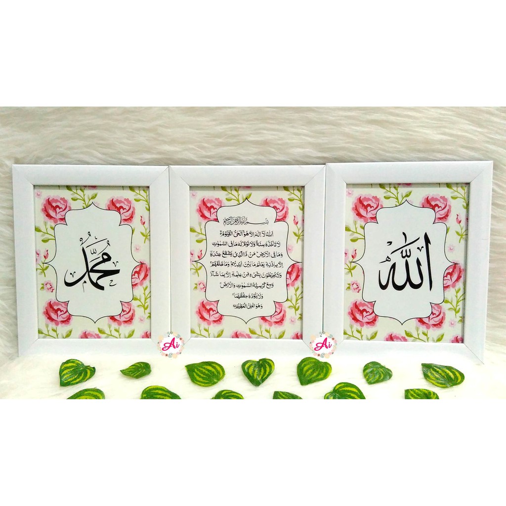 Poster Kaligrafi Allah Muhammad Dan Ayat Kursi Motif Bunga Home Decor - Source