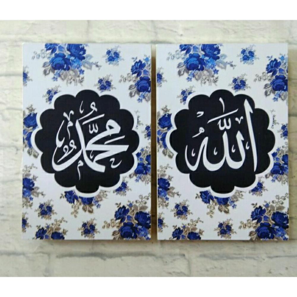 Lukisan Kaligrafi Kanvas Allah Muhammad Backround Bunga 1set 25 X25cm - Source