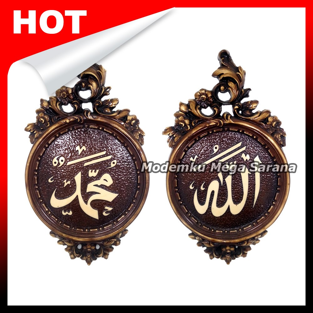 Sepasang Lukisan Kaligrafi Allah Muhammad Hiasan Ukir Bunga 32x20x2 Cm Pajangan Dekorasi Rumah Murah - Source