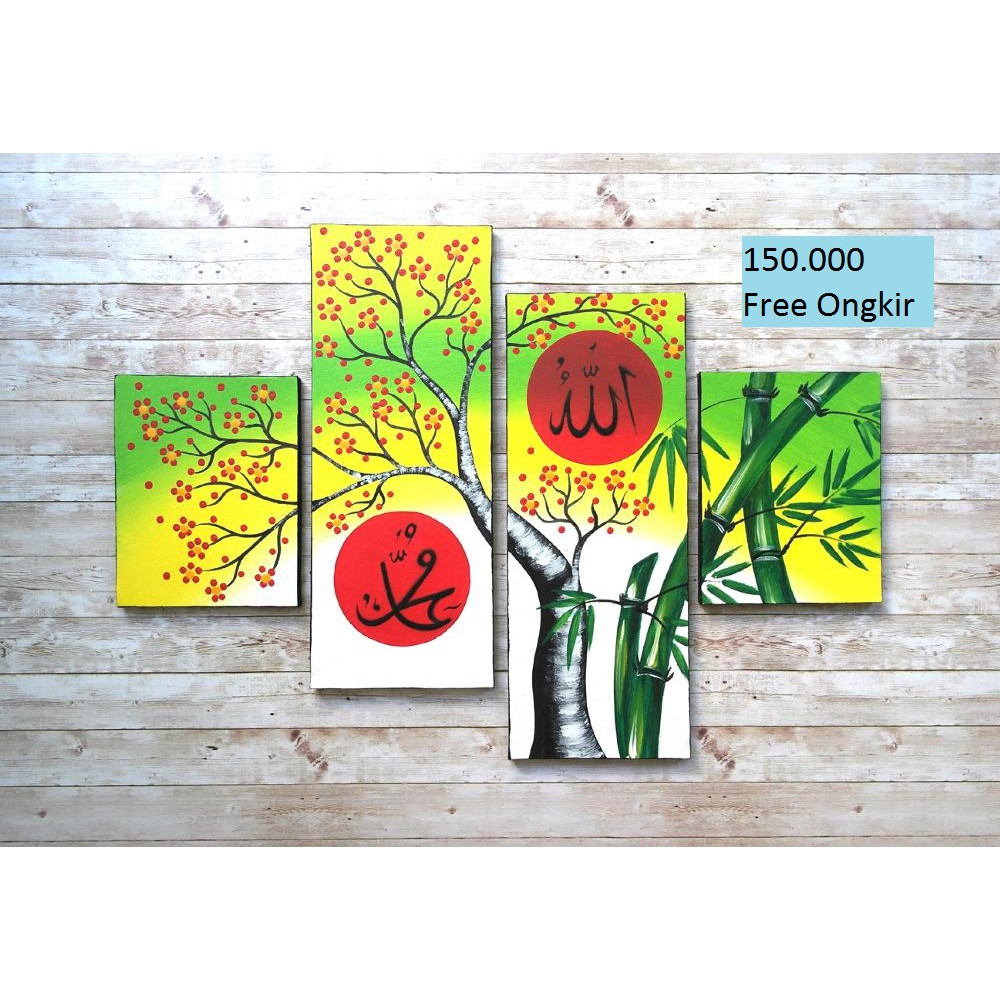Lukisan Kaligrafi Bunga Dot Warna Warni Hijau Merah Kuning Allah Muhammad - Source